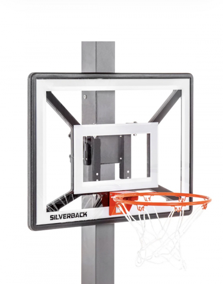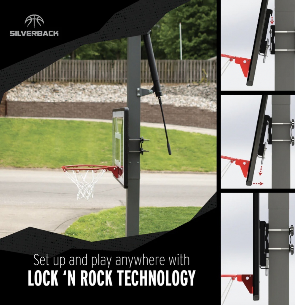 Set up and play anywhere with the Silverback Junior Basketball Hoop. The innovative Lock ‘n Rock Technology allows you to set up and create your own basketball court anywhere with the mini hoop. The set includes the backboard, rim, net, and Lock ‘n Rock mount. The 33” x 23.5” backboard with a 14″ diameter rim quickly mounts onto most round and square vertical poles (3” to 6” wide) perfect for shooting mini hoops wherever you are. The mini hoop features a spring-action breakaway rim that protects players and the backboard during use. When finished playing, transporting and storing the mini hoop is easy with the convenient, patent-pending fold-a-way rim. The mini hoop is convenient and compact as it makes for easy on the go mini hoop games. Take your game everywhere with the mini hoop, Silverback Junior Basketball Goal featuring Lock ‘n Rock Mounting Technology. Enjoy mini hoop games anywhere with the Silverback Junior Basketball Hoop.
