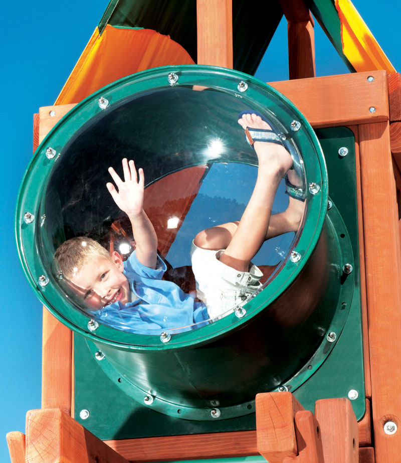 This Bubble Panel, not only allows more light into your swing set deck, but it also gives your kids a little window to peak through. Add the Extended Bubble and your child has a little hideaway space!