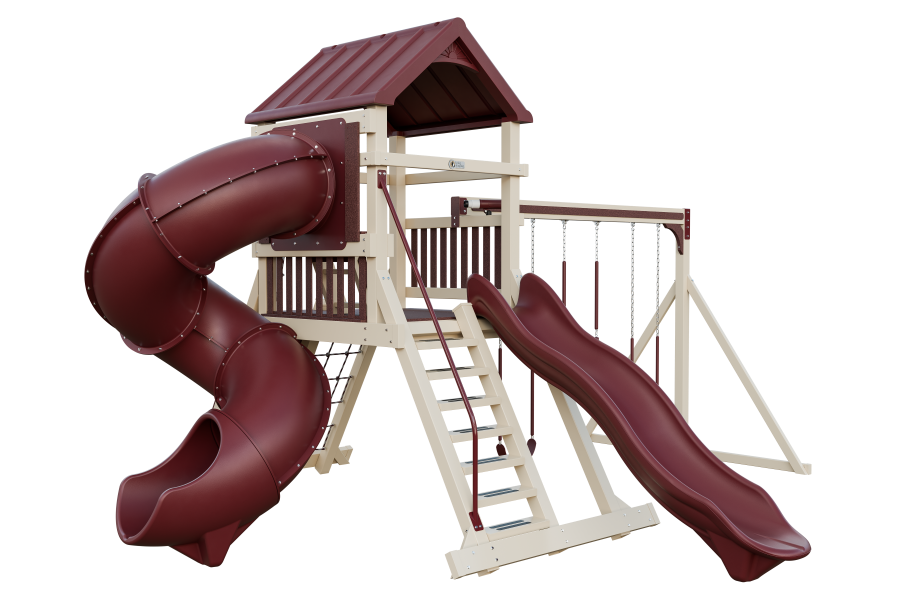 Introducing the Climber 55 Turbo Deluxe playset, the ultimate outdoor adventure for kids of all ages. This playset features a variety of activities to challenge and entertain your children, such as a rock wall, a cargo net, a monster 7ft turbo twister slide, a 10 ft Avalanche slide, a tire swing, and three more swing options. These playsets are designed to be durable, and safe. They are made of premium vinyl and wood materials and heavy-duty hardware that can withstand any weather condition. This playset is also customizable, so you can add or remove components as you wish.