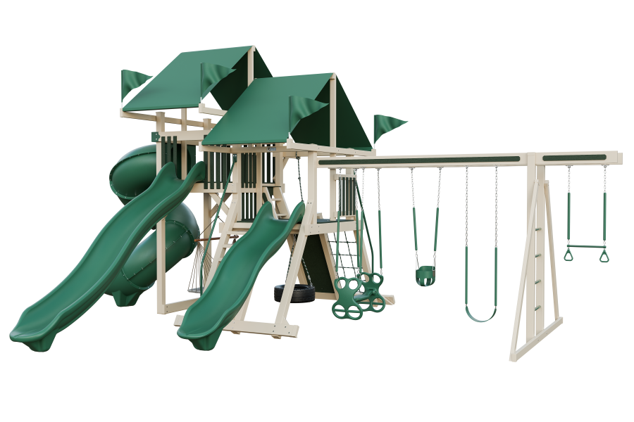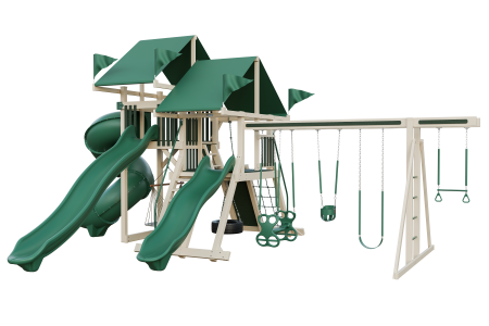 If you are looking for a playset that will keep your kids entertained and challenged, look no further than this amazing product. This playset features a 5′ MC ladder that provides easy access to the upper deck, where your kids can enjoy three different slides: a 10′ avalanche slide, a 14′ avalanche slide, and a 7′ turbo twister slide. They can also swing on one of the six swinging options, including a belt swing, a trapeze bar, a tire swing, a dual glider, a hammock swing and an infant swing. For more adventurous kids, this playset also offers a rock wall and a cargo net that will test their strength and agility. This playset is perfect for kids of all ages and abilities and will provide hours of fun and exercise.
