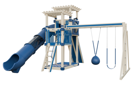 Step into the ultimate backyard paradise with this captivating playset! Spanning a generous 18ft x 18ft, it’s designed to ignite endless hours of imaginative play. The charming double pergola roof adds a touch of sophistication, while the 5ft ladder with railing and the daring 7ft rock wall cater to different levels of ability. Zoom down the thrilling 7ft sidewinder slide with a transparent section, offering an exhilarating ride. Engage in duels on the gigantic checkers game board, fostering strategic thinking. And with three swing options, there’s something for every child to soar and glide through the air, creating unforgettable memories in this extraordinary backyard playground.