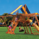 The Combo 4 may look familiar. That’s because it is very close to Combo 2 except for all the bigger and better options such as the sky loft! The Deluxe Playcenter’s unique feature is an angle-based structure that includes a 360 degree tire swing, two extra wide climbing ladders, a super-flared canopy, an agility rope ladder, and the best play system for un-level yards. The Premier Series playset has modular openings, more headroom, and massive big beam construction. From the durable 1-3/8” thick (fastener free surface) deck area to the solid notched brackets you won’t find a sturdier, more attractive swing set. A frame work of 100% premium cedar 4”x4” and 4”x6” timbers allows for a design to grow with your family. This unit is sure to keep little ones swinging and big kids climbing for hours!