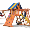 We have taken our Original Playcenter and added the ever popular monkey bars and wood roof! Hand over hand fun is a challenge that the older kids will love. Made from super sturdy cedar construction, the Original Playcenter is the perfect choice for the value minded family who demands the best! Larger timbers of 100% all natural premium Pacific Cedar (naturally resistant to insects and decay, splinters less than pine and North American timber), vinyl-dipped safety swing chains (protects fingers from pinching and insulates against extreme temperature), and rust-proofed hardware (Dupont Dacromet® and galvanized are the best.) These are the fundamentals you will find in Playground One play systems at PlayN Wisconsin.