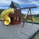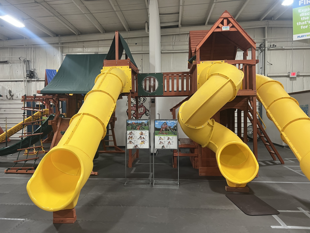 Display sold in “As is Condition”. Includes 5-year wood warranty and FREE INSTALL (Regularly $4,600). This system can be broken down into 2 play systems and modified to fit smaller spaces.
